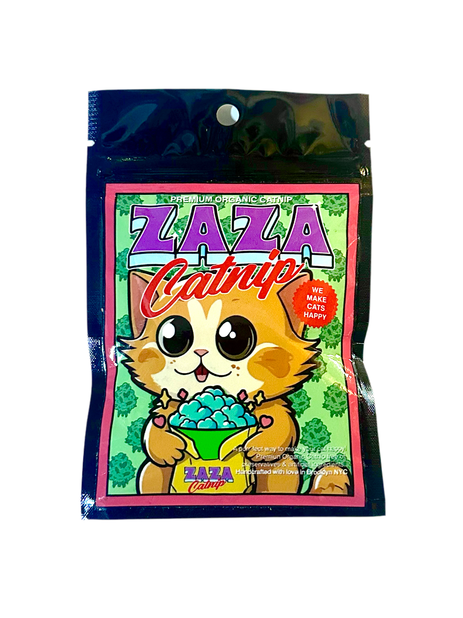 Your kitties will go nuts for our ZAZA Catnip™, they will eat it, roll in it, rub their cute little faces with it and have a great playful time!